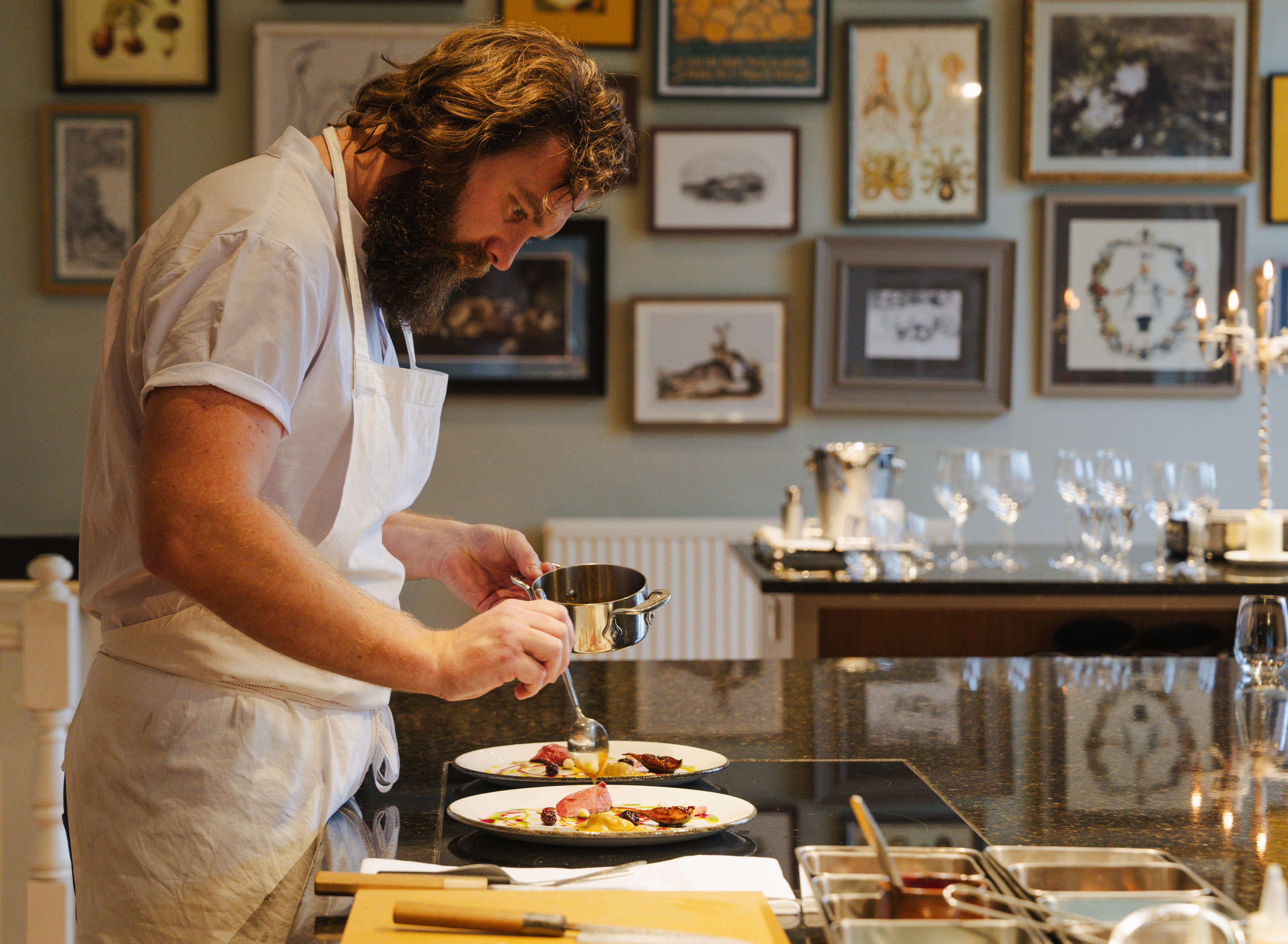 The restaurant has a 2 AA Rosette Award and is listed in the Michelin Guide 2025. Head Chef Adam Westgarth creates a la carte and tasting menus that are full of dishes that highlight the seasonality of the ingredients used and the importance of sustainability and place. Vegetables, heritage-breed livestock and wild game from the hotel’s own nearby working farm are all used in the dishes as well as foraged ingredients from the hedgerows, meadows and woodland that surround the restaurant.